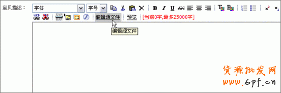 5、頁面中可以看到“寶貝描述”的編輯區,呵呵,很熟悉吧,編輯器很像我們WORD軟件中,很方便的可以編輯輸入文字、插入圖片,當然也能到“編輯源文件”模式”,直接把寶貝模板的“裝修代碼”拷貝進去直接使用,不過這種描述代碼往往是要從設計師手里購買,不過不要著急,我們講的是不花錢裝修,當然自有好辦法,且聽下面詳解。