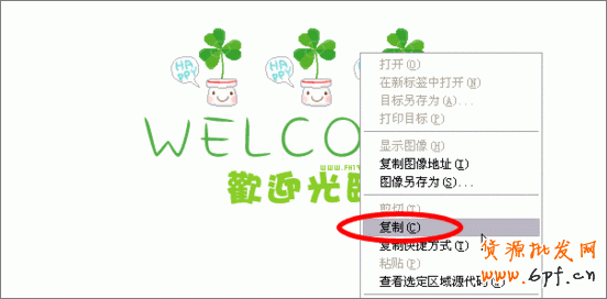 4、當然,還可以插入圖片,方法很簡單,隨便打開一個網頁,在你想調用的圖片上點擊鼠標右鍵,選擇復制