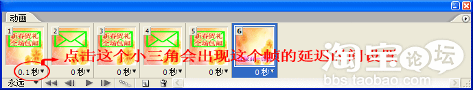 5.接下來我們點擊動畫幀下的小三角選擇這個幀的延遲時間設置,依次類推設置時間(可設置不同的延遲時間突出重點內容):