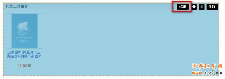第三步:添加好同類寶貝推薦之后點擊【編輯】,進入同類寶貝的編輯頁面,可以對標題進行修改,可以對展示的圖片大小進行設置,如下圖所示: