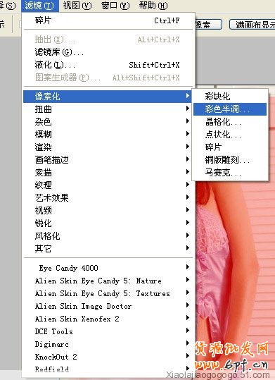 執(zhí)行:濾鏡>像素化>彩色半調(diào)(最大半徑為10-15)
