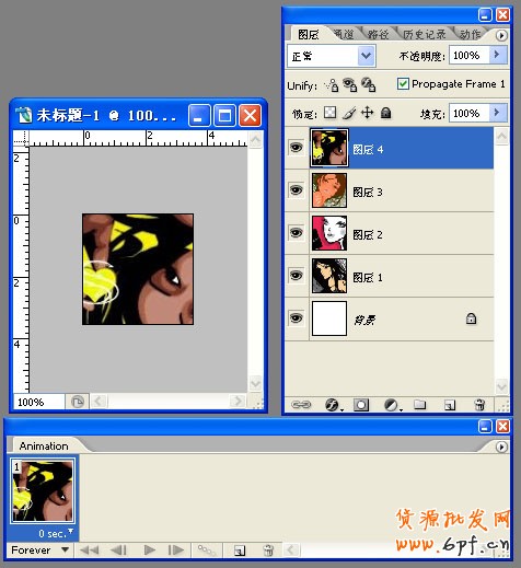 第四步:點擊小三角后選擇Make frames From Layers。就是把每層分布于帖。這里沒有英文的就是中文啦。“從圖層建立帖”這里大家意會吧,因為有的翻譯會不同的。而我是用8.0的漢化包翻9.0的。所以就有的中文有的英文的。