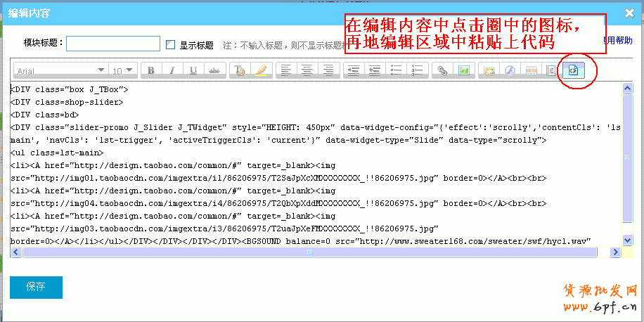 2.修改好代碼了后,到店鋪裝修中添加代碼。