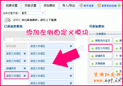 打開管理我的店鋪,在左側點添加模塊 ;