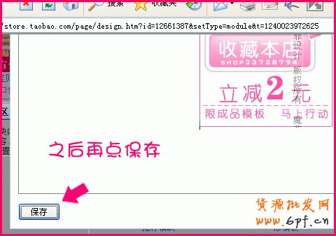 第二:準備收藏按鈕的連接。打開自己的店鋪,點“收藏本點鋪”,出現收藏設置頁面。在頁面空白處,點鼠標右鍵,點“屬性”,然后把屬性里的地址復制下來保存。