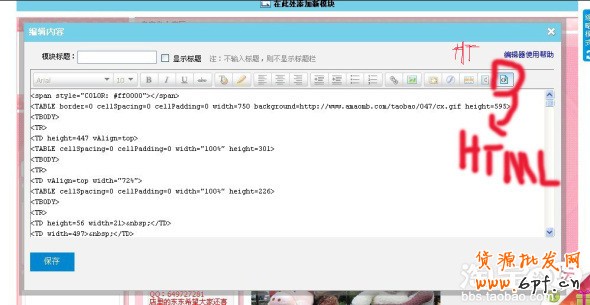 進入店鋪裝修--自定義區--編輯 點擊 編輯HTLM代碼 將代碼一一粘貼在里面 再次點擊此按鈕 效果圖就出來了
