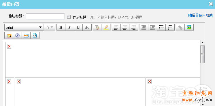 進入店鋪裝修后臺,在右邊增加新的模,選擇自定義內容區,進入編輯頁面,選擇代碼按鈕。