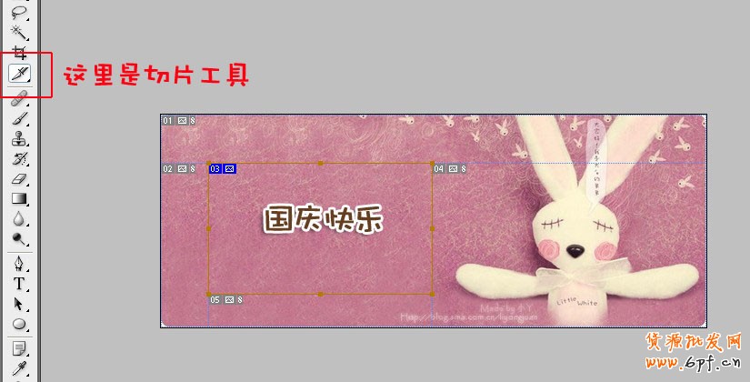 點擊切片工具,把要做鏈接的地方框起來。注意哦,如果是自己做的帶涂層的圖片,切片前需要把圖層合并哦。