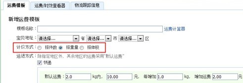 原先單調地按件計數,設置首重和續重,想要按長度、體積或者重量來,腫么辦?現在的運費模版增加了:重量和體積兩個計數單位,相信可以幫助到一部分的商家。