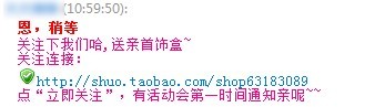 通過對消費者的一些利益方面的驅使,比如“關注掌柜說送優惠券、小禮品”這樣的活動,可以刺激消費者來關注我們的店鋪的掌柜說,達到粉絲積累的目的。