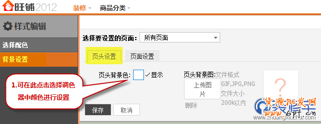 點(diǎn)擊”背景設(shè)置“ --”頁頭設(shè)置“進(jìn)店招位置的背景設(shè)置