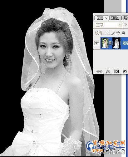 然后在ctrl+v(上面我們Ctrl+V復制過圖層的),把剛才我們復制的圖層粘貼到圖層蒙版中:現在可以看到,圖層蒙版中有了一個和圖層一樣的圖層
