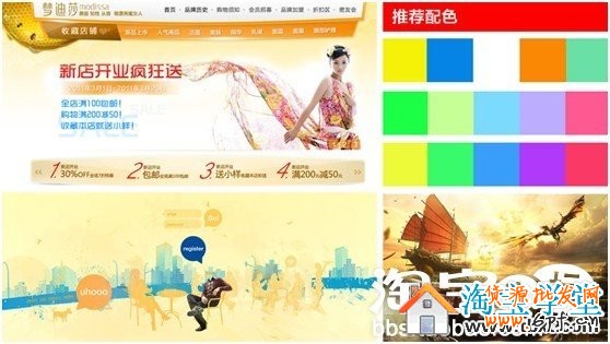 正如前文所說,紅色是淘寶店鋪做活動時出現頻率最高的顏色,但是使用過度的話也容易造成視覺疲勞。為了讓紅色更好地發揮效果而又不至于過度,賣家在使用時可以把紅色和金黃色、橙色、白色、黑色等相搭配。