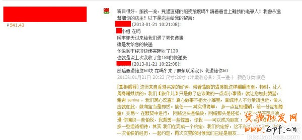 另外我們在發出去的包裹里,都會放一封感謝信,感謝信的文案都是我們精心寫的,而且我們刻意買了很多好看顏色的打印紙來打印。顧客是上帝,人家肯光顧你店你是不是應該感謝他,讓他記住你?如果一個人好不容易通過淘寶千千萬萬的賣家信息搜索到你店鋪來了進行了一次購物,你沒有一點可以讓他記住你的店鋪的好的地方,而是拼命的去催他確認收貨給好評,這樣的購物,又何來的用戶體驗呢?記住,用戶體驗不單單只是店鋪裝修好,界面設計的漂亮,用戶體驗是從買家進到你店鋪到收到貨以后你所進行的服務整個一系列的!舉例說明,一個香港的買家來我店里買拉桿箱,拉桿箱是屬于大物件,發到香港還只能發順豐,我特意咨詢了順豐的客服,也在順豐的網站上查詢了得出運費補差是180元,然后我也把順豐官網的價格結果截圖給買家看了,買家說沒問題,付了180元運費給我,第二天我叫來順豐發件,順豐說可以發到香港的經濟快遞,慢兩天,但是可以便宜三分之一,我當然二話不說發便宜的,然后發好后馬上聯系香港的買家退六十元運費給她,她都感動死了。這個買家如何感動的,她都寫在評價里了,各位不信的去我店里的評價找這位香港買家的評價吧!