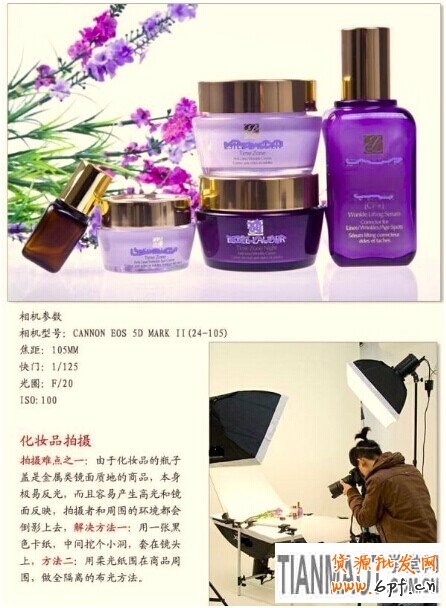 這張圖片里介紹了容易產生高光和鏡面反映的拍攝技巧:用一張黑色卡紙,中間挖個小洞,套在鏡頭上,還有用柔光紙圍在商品周圍,做全隔離的布光方法。