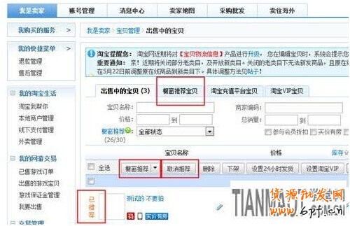 老版賣家中心:我是賣家-寶貝管理-出售中的寶貝