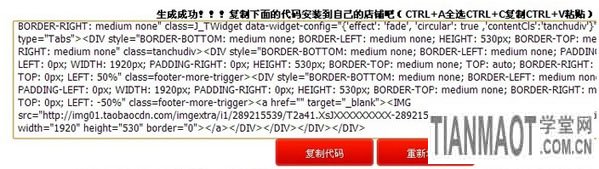 當鏈接添加完畢,我們回到代碼視圖,復制里面的代碼。繼而在淘寶裝修頁面點擊添加一個自定義模版,將代碼粘貼進去,跟著可以看到積極的效果。