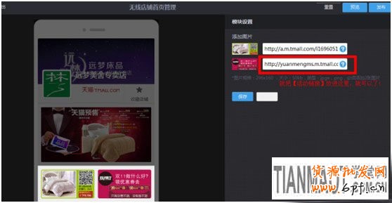 推廣應用方法二:天貓無線店鋪裝修 (tw.tamll.com)。在內容設置里面添加鏈接