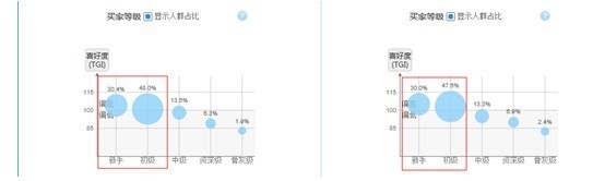 有這么一句話:新手和初級買家對于小賣家而言,就像是天使一樣。為什么會這樣說呢?因為大量的初級買家和新手買家還是網購“菜鳥”,這些人也許還不懂什么是人氣丶信譽丶DSR評分,也分不清什么是天貓丶皇冠丶B店C店啥的,如果是骨灰級買家和資深買家,也許他們對心級賣家多看一眼的耐心都沒有。所以,當我們發現某個詞購買的人群以新手買家為主的時候,尤其是新手賣家應該好好的注重這個詞。