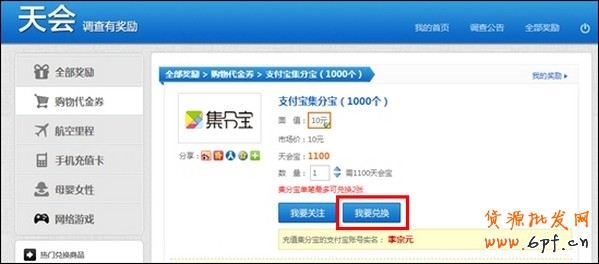 1、參加天會問卷調(diào)查,可獲得天會調(diào)查網(wǎng)獎勵會員的天會寶虛擬貨幣(THB),積累滿1100 THB,可兌換價值10元的1000個集分寶。