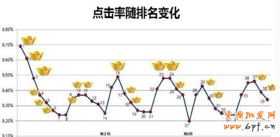 人觀看頁面的順序是呈F型,從左向右,由此可見1 2 3車位上的點擊率為什么特別高,7 8位還不如9 10位了。但是,你知道14 位為什么點擊率那么低嗎?按理說排在第二頁第一位,點擊率應該很高呀?