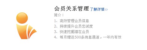 會員關系管理:會員制作分兩種,1種是按照買家交易額,另一種是按照買家交易筆數,需要我們劃定一個規則,達到多少是高級會員,再到多少就是VIP會員。會員卡也是提升回頭率一個非常有效的方法,比如我有某個店里的會員卡,恰巧我要買的東西他的店里有,那我一定先去他的店里看一看,算一下這個折扣是不是更合適一些,沒有用的朋友可以去阿里旺旺網店版研究下。會員關系管理的主要作用有