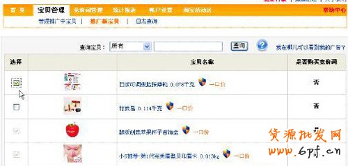 然后,選中您要推廣的新寶貝,點擊寶貝左邊的方框。