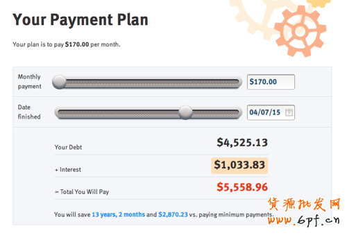 他們提供的工具可以幫助人們管理和償還自己的債務。在圖所示的這個環節中,我們可以看到,該工具能夠根據用戶選擇的支付計劃來即時的計算出未來幾年的債務償還詳情,包括總額、節省出的時間和金錢數量等等,讓用戶在決策之前心知肚明,安心的選擇對自己最合適的方案。