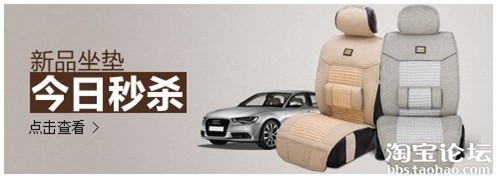 圖1的文案非常簡潔,寥寥幾個字是產品信息(新品坐墊)+促銷信息(今日秒殺)+誘導信息(點擊查看)的組合,信息明確又有適當留白,能比較好的傳達汽車坐墊產品的特性。而圖2咋一看也算簡潔,但“今日秒殺”和“特價促銷”實際上是屬于重復信息,且多余的文字在設計上也破壞畫面品質。