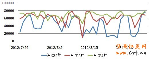 2焦周內(nèi)流量少一些,2000萬~3000萬PV,周末流量和3焦和4焦差不多,都有6000萬~7000萬PV;3焦和4焦周內(nèi)流量較穩(wěn)定,一般都在4000萬以上。
