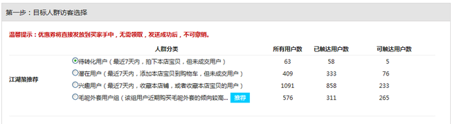 1、通過江湖策的精準營銷發送優惠券,7天一個周期。