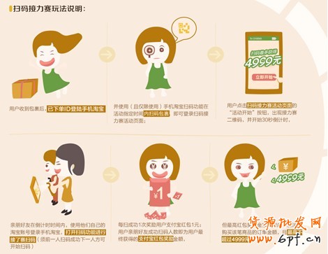 掃碼活動:最近很流行的一種二維碼包裹活動,由阿里巴巴指定電商包裹專用。如果已經參加過的商家相信都很熟悉,但在這里還是要說一下,對于沒有參加報名的商家,可以自己店內搞,叫聯合促銷。做法很簡單,在一陽指創建一個獨立頁面,我們叫做“掃碼有驚喜”那里面就可以設置。內容題材自己發揮。做好這個活動頁面接下來就是印刷不干膠,印刷好之后,隨包裹寄出。圖文并茂,用的是漫畫形式來體現,消費者看到覺得更有意思。舉個例子:
