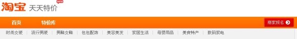 一、淘寶網天天特價首頁( tejia.taobao.com)導航欄右側商家報名