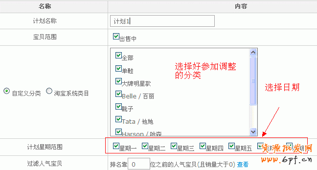 進入后,根據(jù)需要選擇是按分類還是寶貝建立計劃,一般情況下選擇按分類建立計劃,填好計劃名稱,選好分類、星期范圍、上架時間類型以及時間段(一般用默認的類型和時間段),保存上架計劃就可以了。