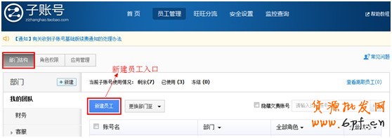 http://zizhanghao.taobao.com/,點(diǎn)擊“管理我的子賬號(hào)“進(jìn)入子賬號(hào)管理后臺(tái),如圖3。