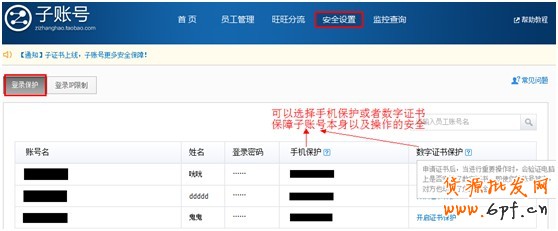 子賬號(hào)被盜了怎么辦?寶貝是否該員工本人操作刪除?設(shè)置子賬號(hào)安全保護(hù),輕松解決以上問(wèn)題。如圖10,子賬號(hào)為您提供了手機(jī)保護(hù)和數(shù)字證書等多種安全保護(hù)措施。