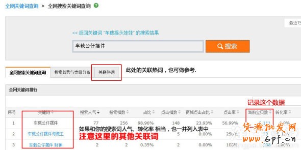2.列出每個關鍵詞的 搜索人氣 轉化率 競爭寶貝數 搜索排名