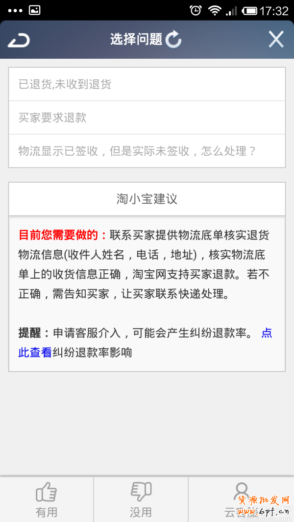舉例:您的訂單編號為3899xxxxx,買家收到貨物后申請了退款,但是退貨沒有收到,到底該如何處理呢?