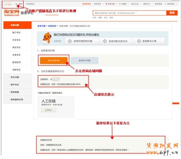 B:店鋪搜索,您在登陸狀態下選擇查詢店鋪問題會直接提示店鋪狀態。