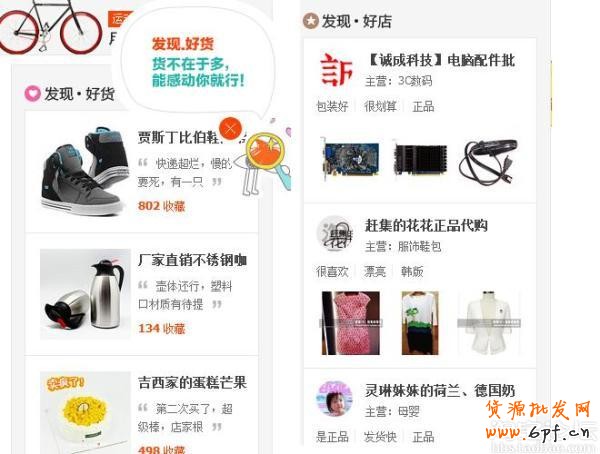三、淘寶首頁“愛淘動態(tài)”欄目取消,新增加“發(fā)現(xiàn)好店 ”和“發(fā)現(xiàn)好貨”兩個(gè)欄目,以顯示集市精品為主;