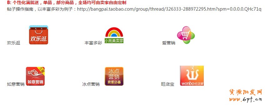 營銷優(yōu)勢: 一,零門檻:只要您是淘寶集市賣家,就可以使用彩票拉熟,低成本高收益。 二,引流促成交:通過朋友熟人這層關(guān)系網(wǎng),送出500萬夢想,維護(hù)朋友圈關(guān)系,拉人到店鋪,引流促進(jìn)成交,提升店鋪信譽。讓小店成為大店。從目前使用的賣家數(shù)來看,只要用戶成功領(lǐng)取彩票,那回訪率和店鋪成交率那可都是杠杠滴,85%以上哦。 三,便捷快速:PC和客戶端都十分方便通訊錄一鍵導(dǎo)入 設(shè)置路徑:旺鋪---營銷工具