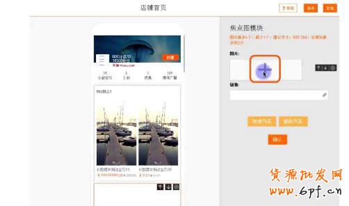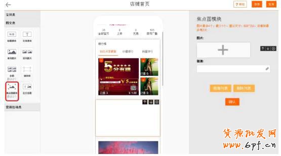 (1)將左側焦點圖模塊拖動到中間預覽頁面上;