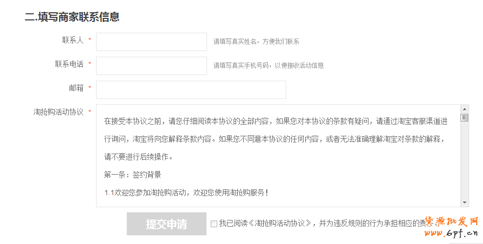 注意點:一定要選擇同意我已閱讀淘搶購活動協議,才能提交申請。