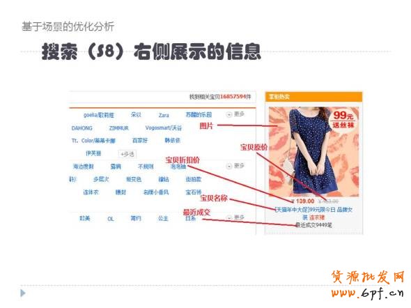 寶貝展現(xiàn)的信息:主圖、寶貝名稱、原價(jià)、折扣價(jià)、成交筆數(shù)。