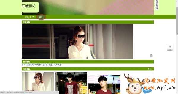 來看看pc端的效果,店鋪首頁已經變成了剛才裝修的多端頁面。同理,用pad訪問店鋪首頁時,會發現首頁也替換了。
