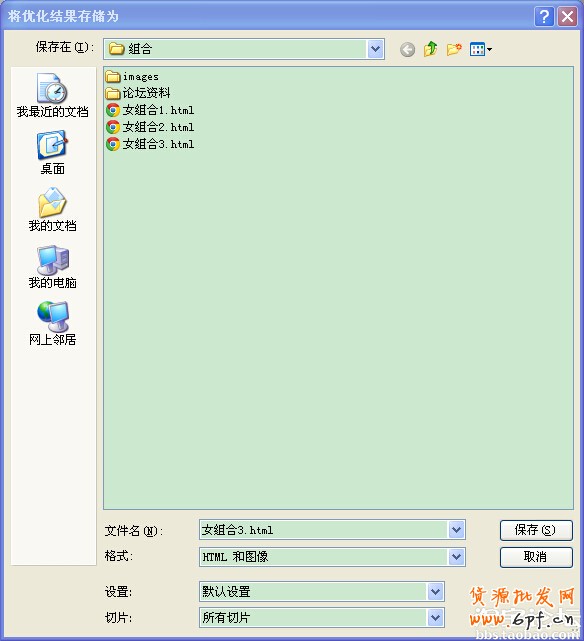 第六步:點擊存儲,格式要選擇HTML和圖像,這樣PS的任務就完成了;