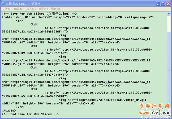 第九步:復制記事本中 <table id=……到最后</table> 的內容到詳情頁中的源代碼,就可以了,如果出現圖片破損,那應該是圖片的鏈接代碼不正確,修改一下就好。