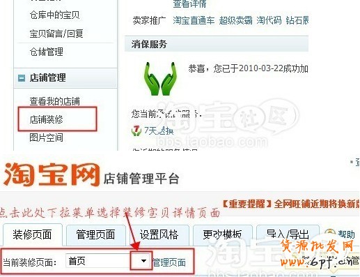 第二步:進入“我的淘寶”,點擊左側的“店鋪裝修”,到達編輯頁面