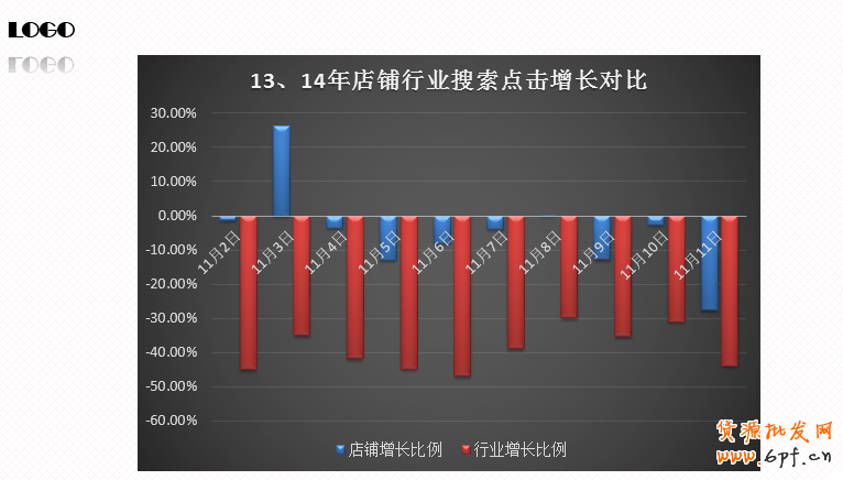 簡單歸納下:如果根據行業的數據分析,14年雙11區間流量只能達到15萬4682的流量左右。在短短的5天時間內增加了近4萬多近5萬的搜索流量,第一波的優化平均每天增長達8000多搜索流量。