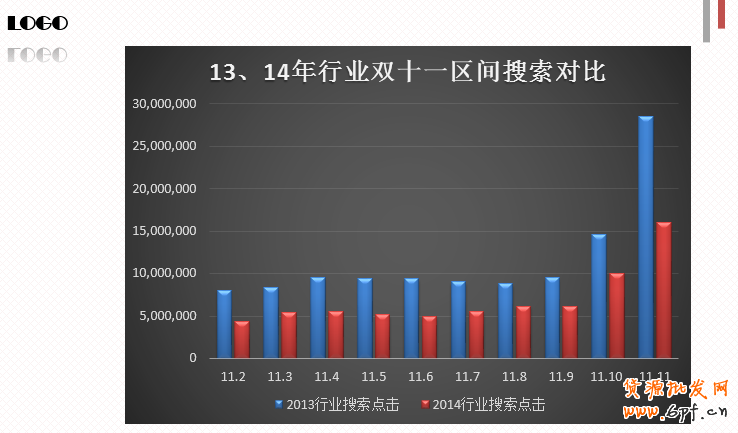 14年行業與13年行業搜索相差40-50%,按照這組數據,14年雙11最多完成15萬左右的搜索,而事實上14年雙11期間完我們成了20多萬的搜索數據,這是怎么來的?